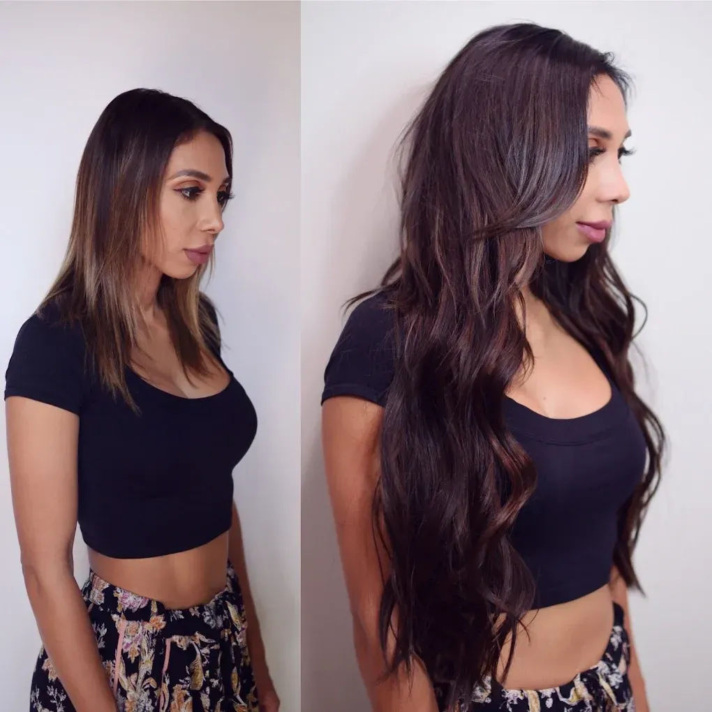 Super encantada con mis extensiones. Jenni acertó completamente con el color, por lo que me quedan integradas perfectamente. Tengo el pelo en un tono 5.0 pero me quedan en el largo restos de mechas balayages de hace un año y me salen los reflejos, por lo que aplicó la técnica bicolor. Me encanta. La calidad del pelo es increíble y el adhesivo no se nota para nada y son comodísimas de llevar. Mil gracias❤️ -Miriam CH